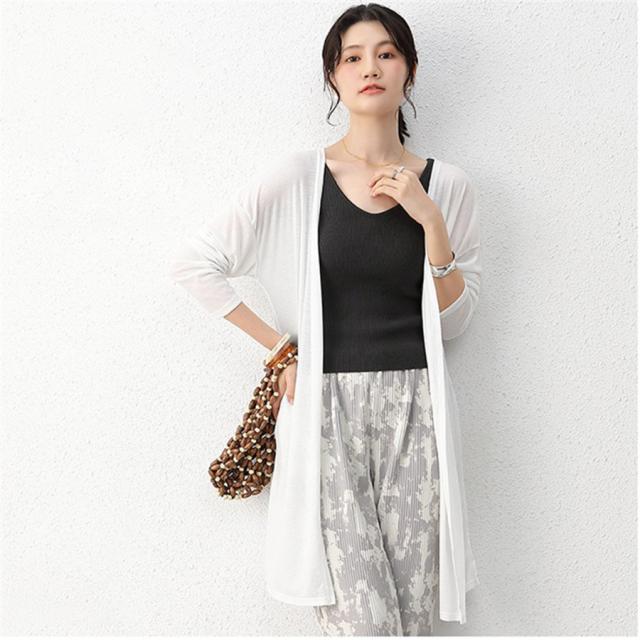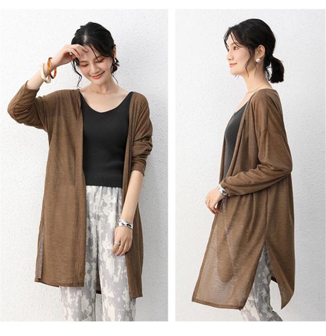 ロングカーディガン カーディガン レディース ひんやり UVカット 紫外線対策 長袖 エアコン対策 夏 薄手 シアー ゆったり 羽織 事務服