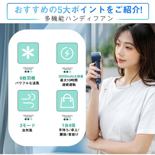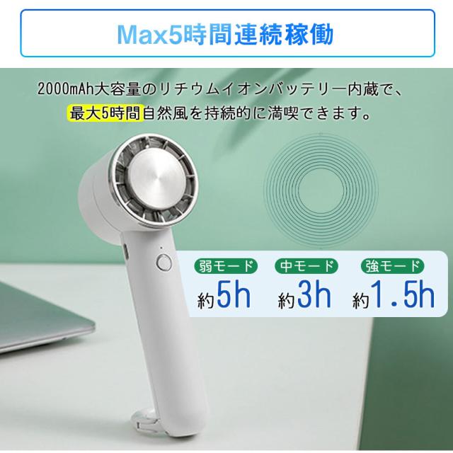 ■2000mAh大容量のリチウムイオンバッテリー内蔵で、最大5時間涼風を持続的に満喫できます。