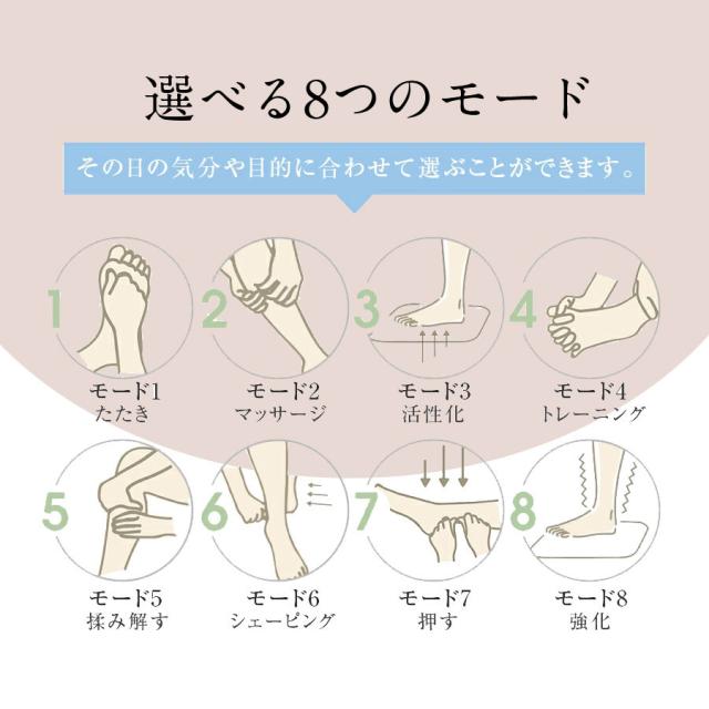 1台で足裏、ふくらはぎ、太ももの脚全体に対応。
