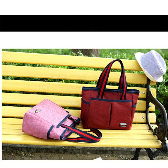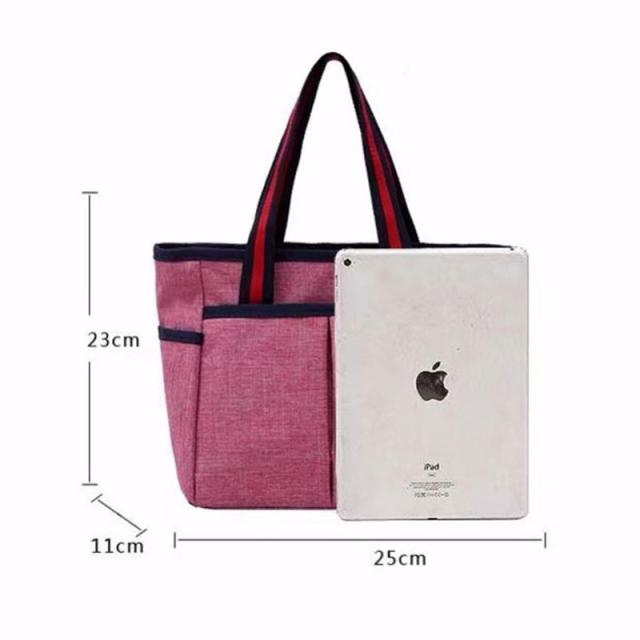 - 弁当を持ち運ぶ用に購入しました。容量的にもちょうどいいサイズでチャック付きです。サイドポケットにペットボトルも入るので、とても便利でよい商品です。