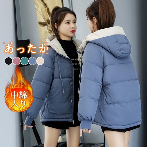 ダウンコート レディース 秋 冬 中綿コート ショットコート フード付 暖かい 軽い オフィス アウター 防寒対策 厚手 防風 ジャケット 通勤通学