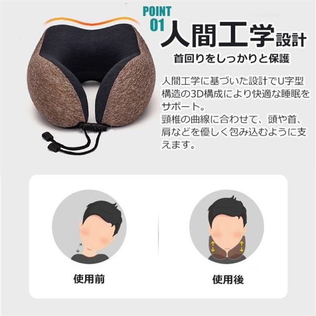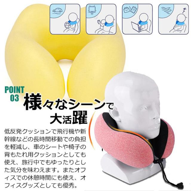ネックピロー 低反発 携帯枕 収納ポーチ付 首枕 車 旅行 飛行機 新幹線 U型枕 カバー付 洗濯可 オフィス 昼寝 テレワーク ギフト 誕生日