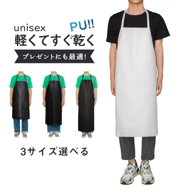 3サイズ選べる エプロン レディース メンズ PU レザー カフェ ロング丈 業務用 倉庫 キッチン 幼稚園 保育園 調理実習 料理教室 飲食店
