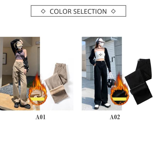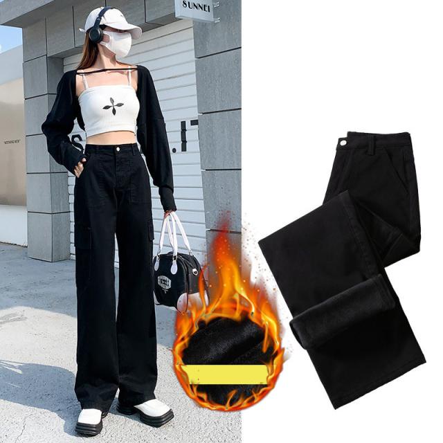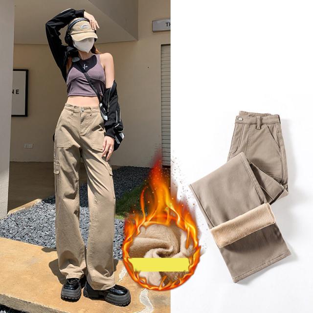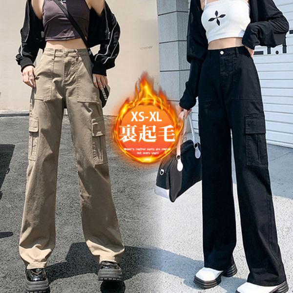 カーゴパンツ レディース 裏起毛 ワークパンツ ハイウエスト ワイドパンツ 秋冬 ロング ボトムス カーゴ 無地 カジュアル ゆったり おしゃれ