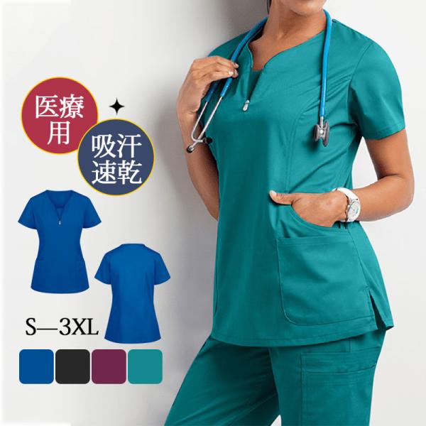 ナース服 レディース 診察衣 ナースウェア ユニフォーム 女性 白衣 看護師 介護 整体 整骨 クリニック 透け防止 吸汗 速乾 防臭 抗菌 スクラブ ファスナースクラブ ナース 大きいサイズ シンプル 実用性 抜群 人気 すっきり スタイルアップ さわやか 高級感