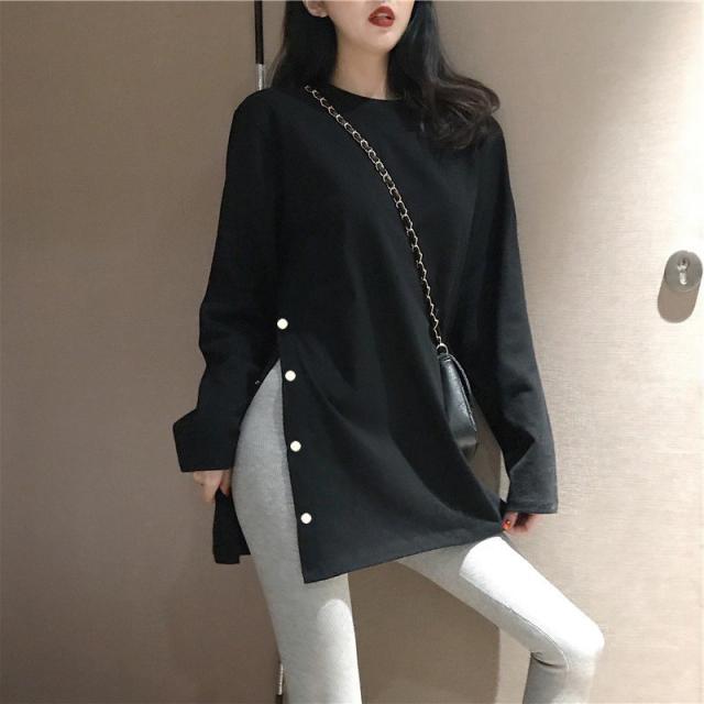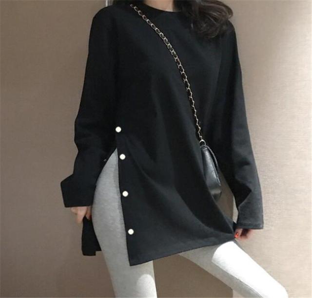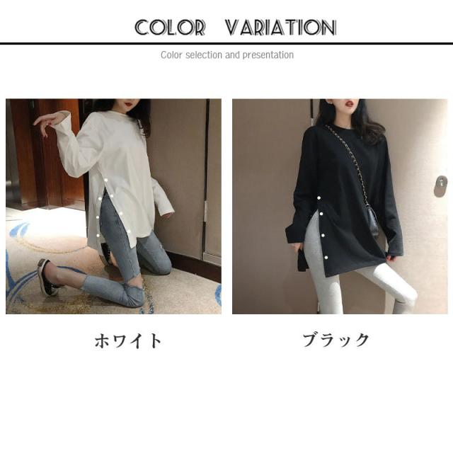 カットソー レディース トップス Tシャツ 春 ロンT スリット 長袖 tシャツ ロング ゆったり 大きいサイズ リラックス 体型カバー