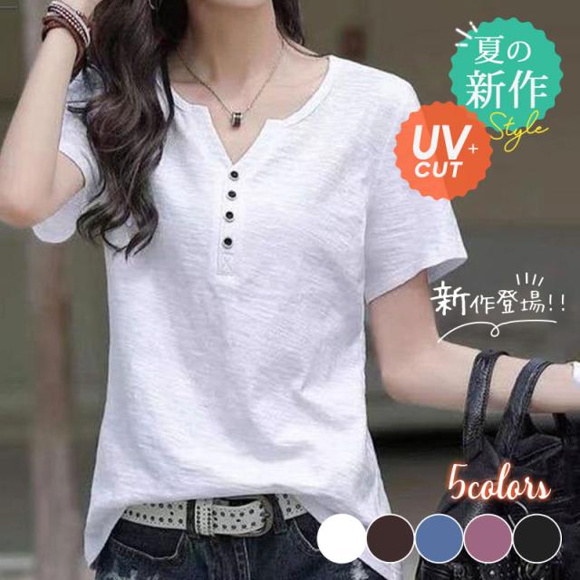 【先着100名限定:1枚899円!2枚購入&クーポン利用で】Tシャツ レディース 春 夏 トップス 半袖 tシャツ スリム カットソー プルオーバー インナー UVカット 大人 楽ちん