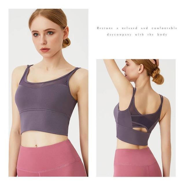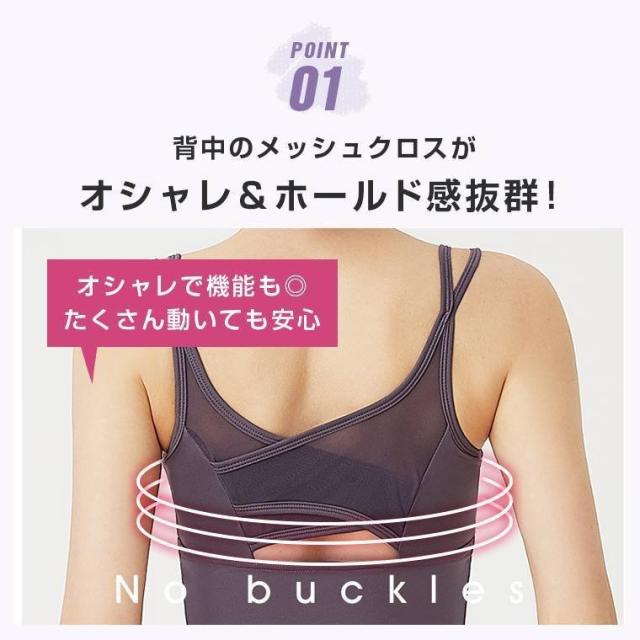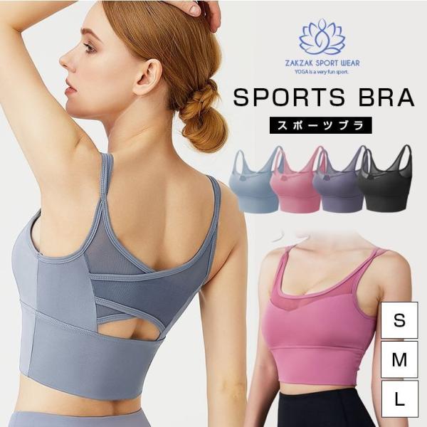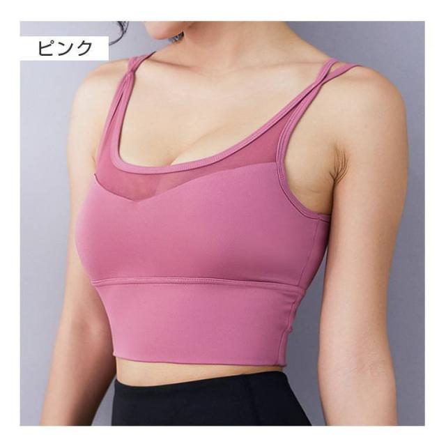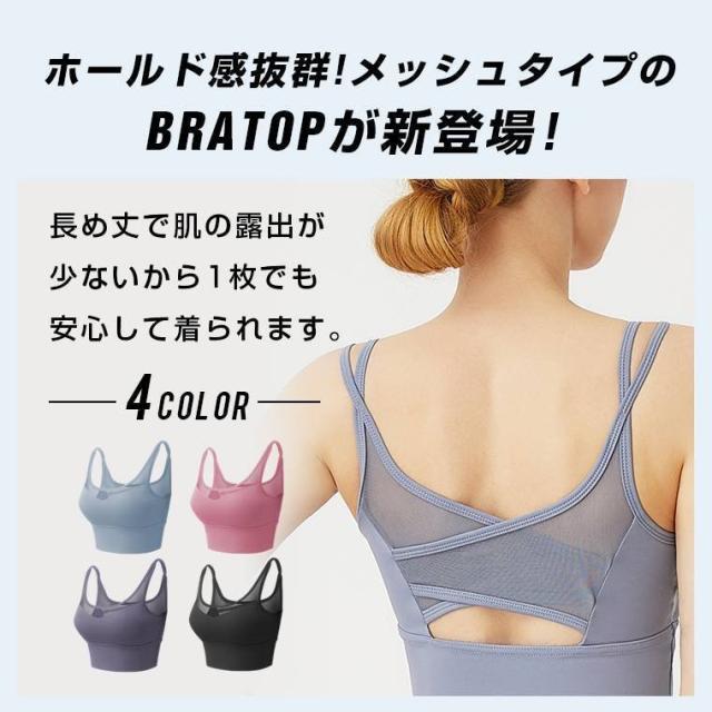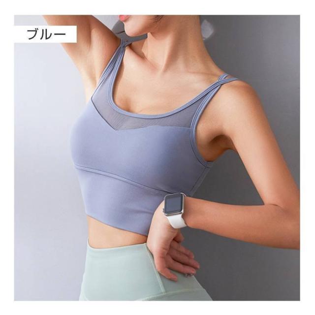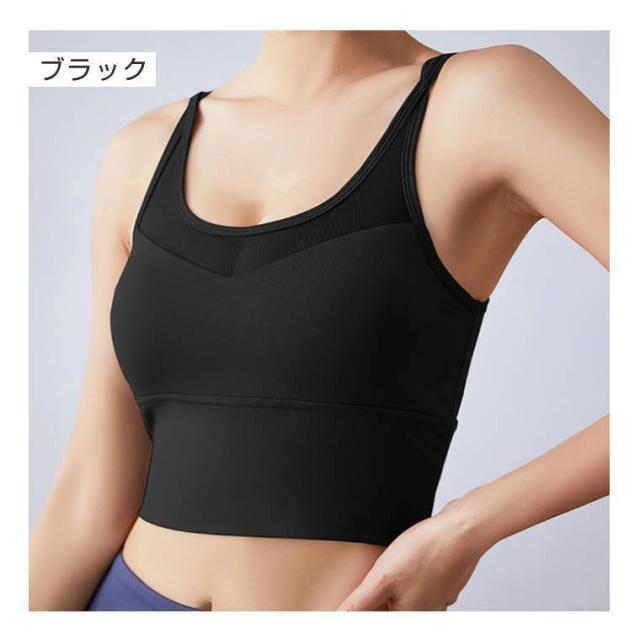 スポーツブラ スポブラ ブラトップ ヨガ トップス ヨガトップス 長め丈 細見え バッククロス メッシュ 伸縮性 カップ付き ジム ヨガブラ 送料無料