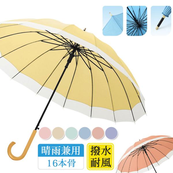 長傘 晴雨兼用 傘 雨傘 レディース 16本骨 メンズ 大きめ 日傘 UVカット バンブーハンドル 撥水加工 竹ハンドル 北欧 軽量 ひんやり 通勤通学