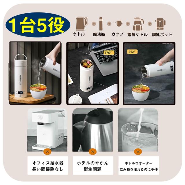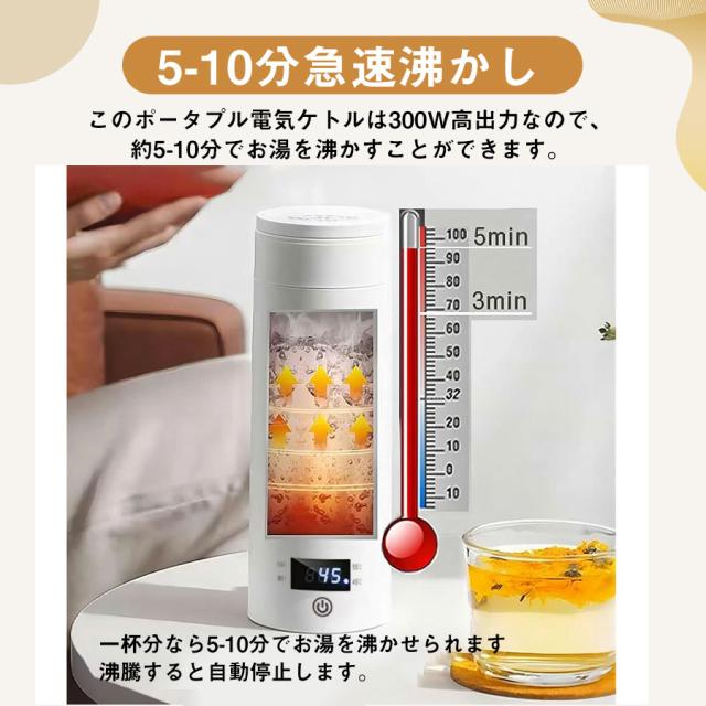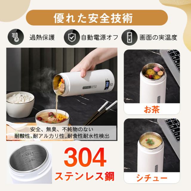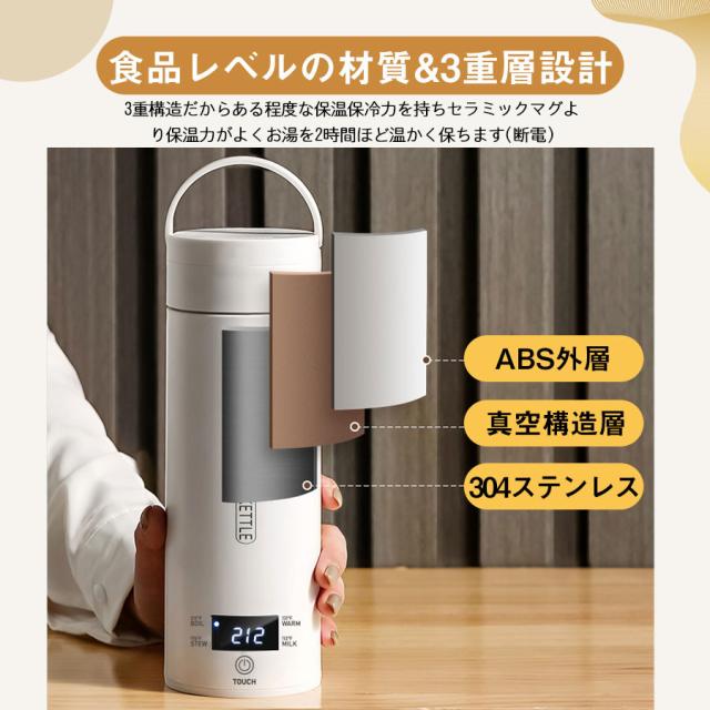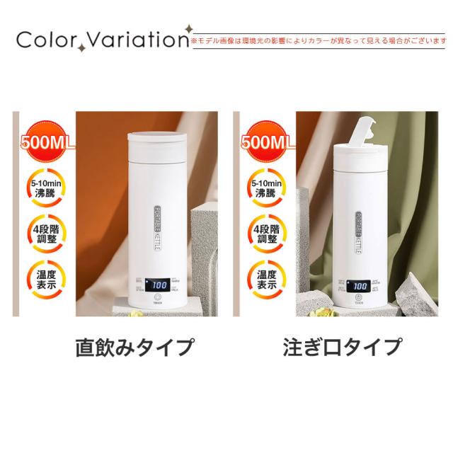 ★即納★ 電気ケトル 電気ポット 電気水筒 ポータブル 500ml 旅行用 自動OFF 急速沸かし 4段階温度設定 空焚き防止機能 持ち運び 小型 漏れ防止