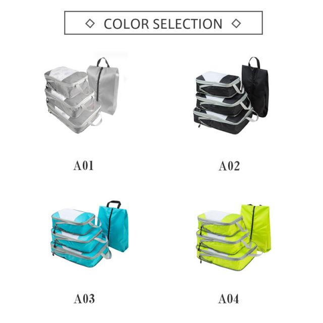 トラベルポーチ 圧縮バッグ 4点セット 旅行 トラベル 旅行用圧縮袋 ファスナー 収納ポーチ 衣類 旅行ポーチ 軽量 出張 バッグインバッグ 簡単収納