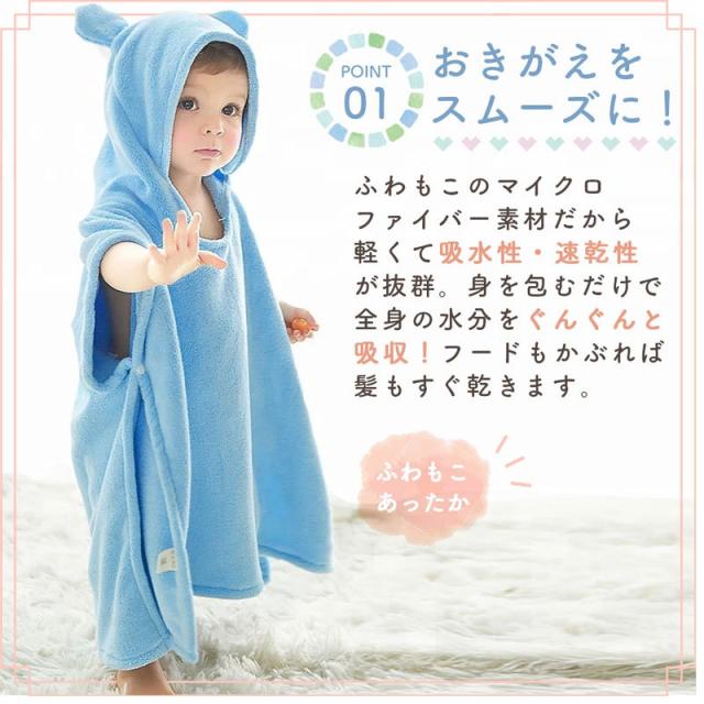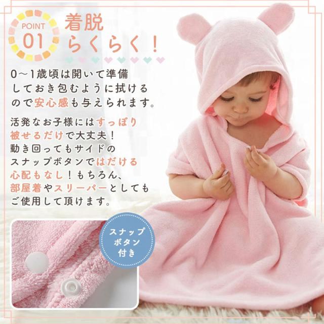 ベビーバスローブ ポンチョ 祝い キッズ フード付 バスタオル 子供用 ボタン付き プール 水遊び ギフト