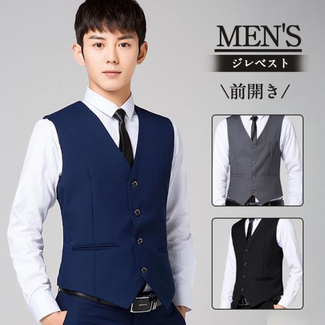 赤字覚悟 ジレ ベスト メンズ ビジネス ノーカラー 前開き Vネック スリム スーツ 男性 礼服 定番 格好いい 紳士用 フォーマル 無地