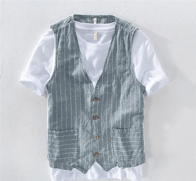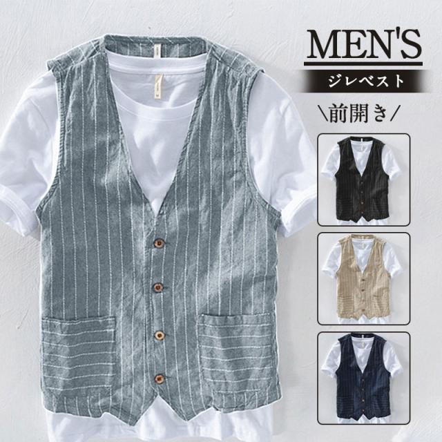ベスト ジレ メンズ 麻 夏 チョッキ リネン 前開き ジレベスト 通気 通勤 男性 礼定番 格好いい 紳士的 フォーマル コーディネート おしゃれ