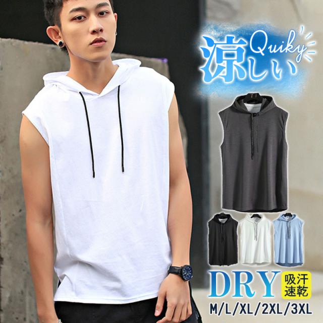 【最旬の夏物が特売】パーカー メンズ 半袖 涼しい 夏 ノースリーブ 薄手 吸汗速乾 プルオーバー Tシャツ フード付 海 トップス スポーツ