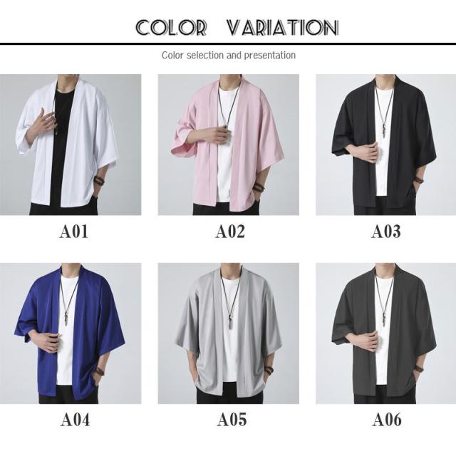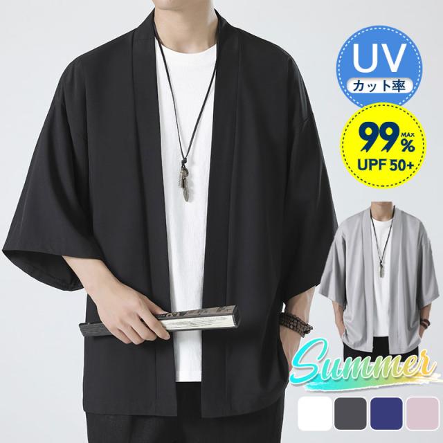 カーディガン メンズ 甚平風 サマー 夏用 接触冷感 七分袖 和風 薄手 涼しい トップス 浴衣風 お花火 お祭り イベント カジュアル おしゃれ