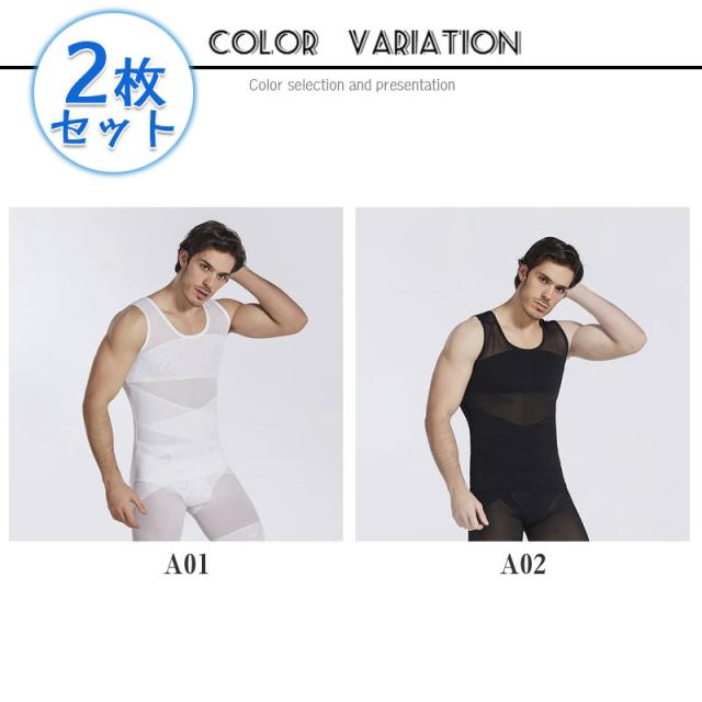 加圧シャツ メンズ 2枚セット 加圧インナー Tシャツ タンクトップ 姿勢 コンプレッションウェア 補正下着 インナー スポーツ ゴルフウェア