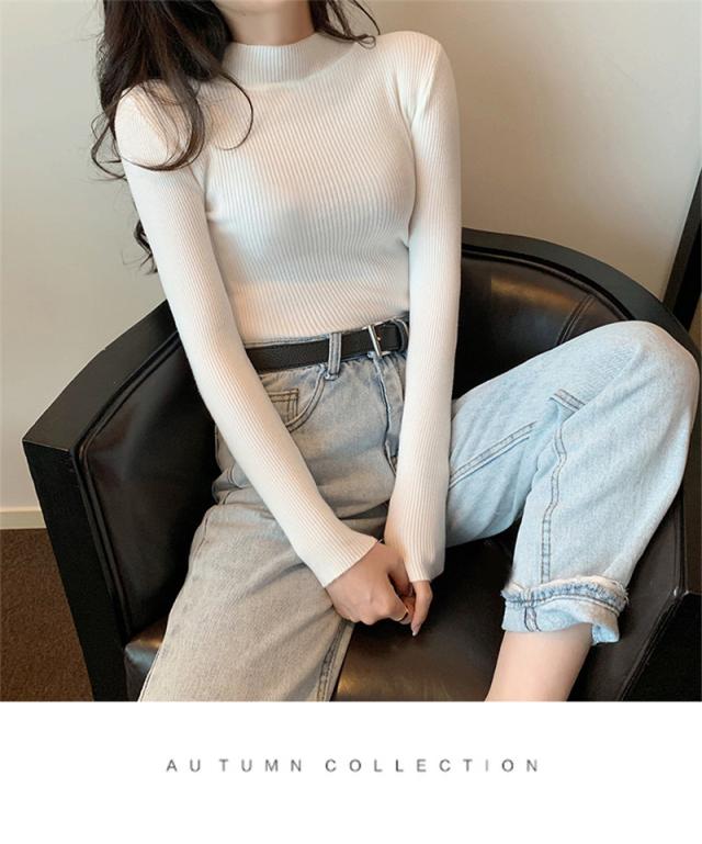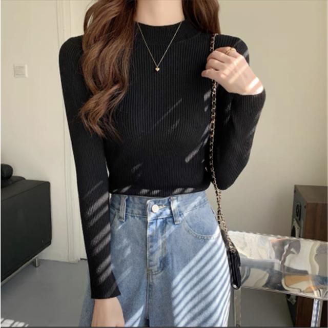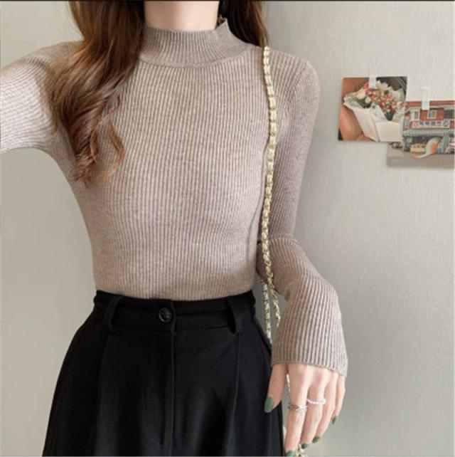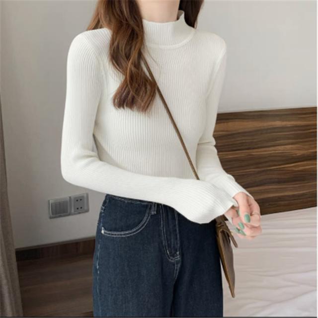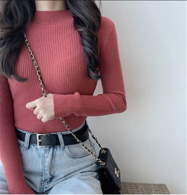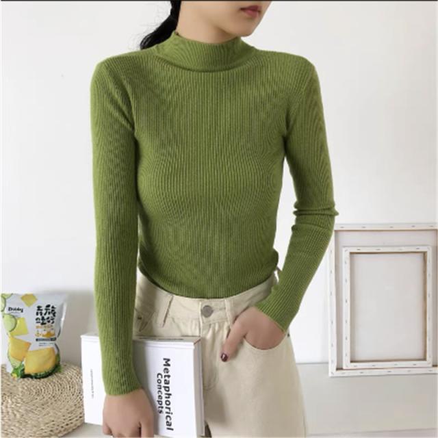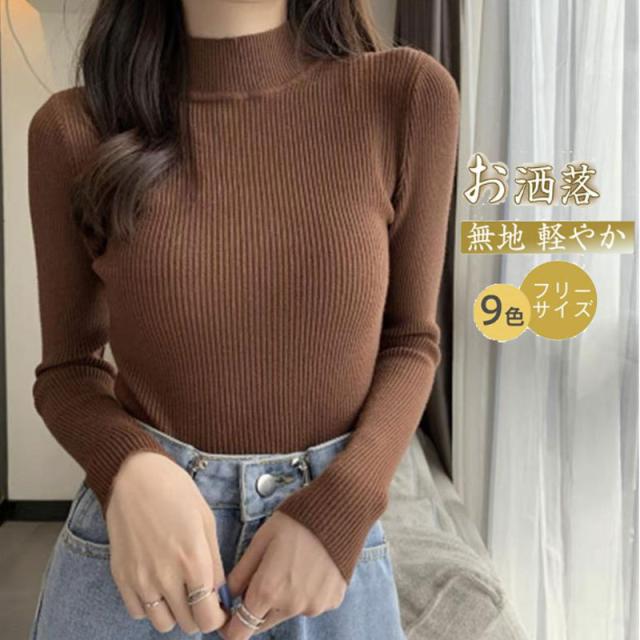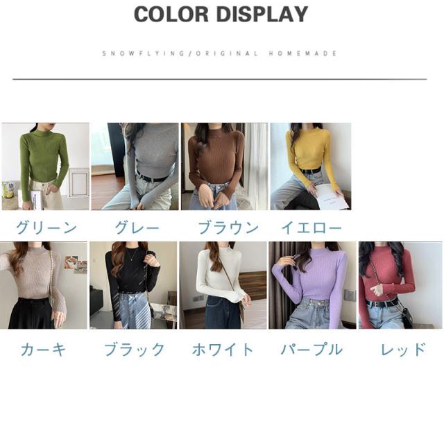 価格破壊 ニット レディース セーター 長袖 プチハイネック プチプルオーバー インナー トップス リブ 伸縮性 軽やか オフィス 女性らしい