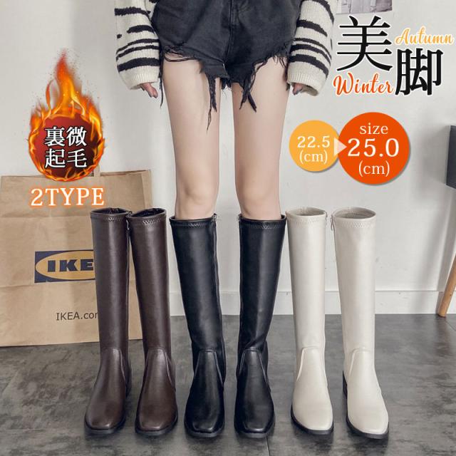 赤字覚悟 ジョッキーブーツ レディース ロングブーツ 秋 冬 ニーハイブーツ 2TYPE 裏微起毛(ボア)なし/あり 太ヒール 通学 通勤 履きやすい