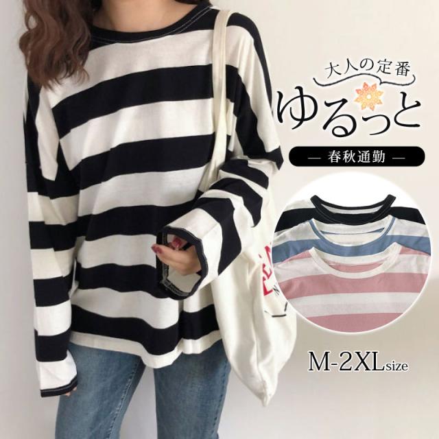 カットソー 長袖 Tシャツ レディース トップス 秋春 tシャツ ボーダー ロンT 重ね着風 女性用 通勤通学 体型カバー ゆったり オシャレ