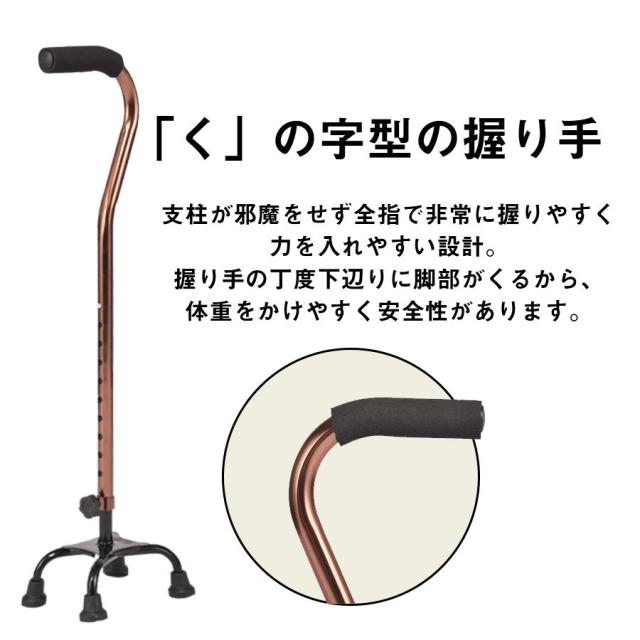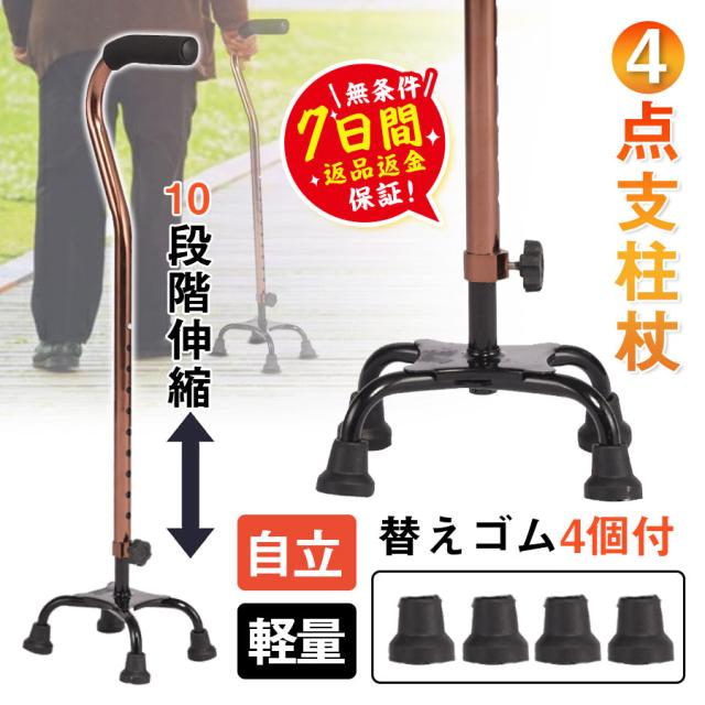 ★即納★ 杖 4点杖 介護 ステッキ 高さ調節可 10段階伸縮 替えゴム4個付 アルミ 自立 四点杖 伸縮式 軽量 女性用 男性用 高齢者 ギフト
