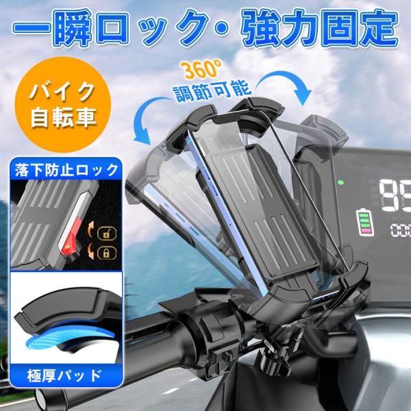 スマホホルダー 自転車 バイク スマホスタンド 携帯ホルダー 360度回転 秒速ロック サイクリング ロードバイク 振動 軽量 落下防止 脱落防止