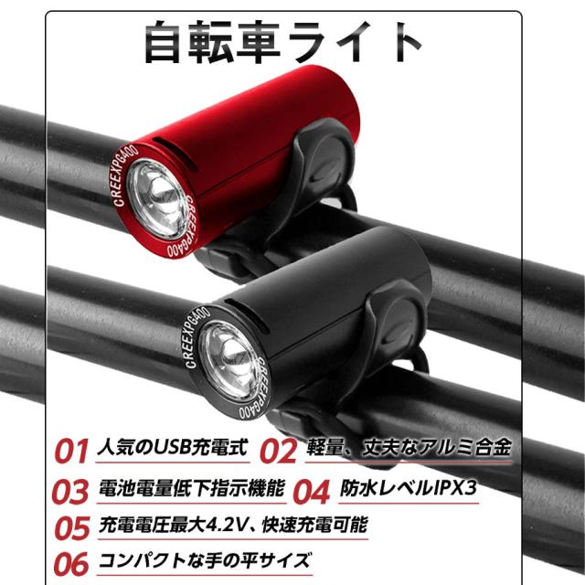 自転車ライト 充電式 後付け 明るい LED 防水 フロントライト usb サイクルライト 大容量 ヘッドライト 多機能 通学 通勤 停電対策 夜間
