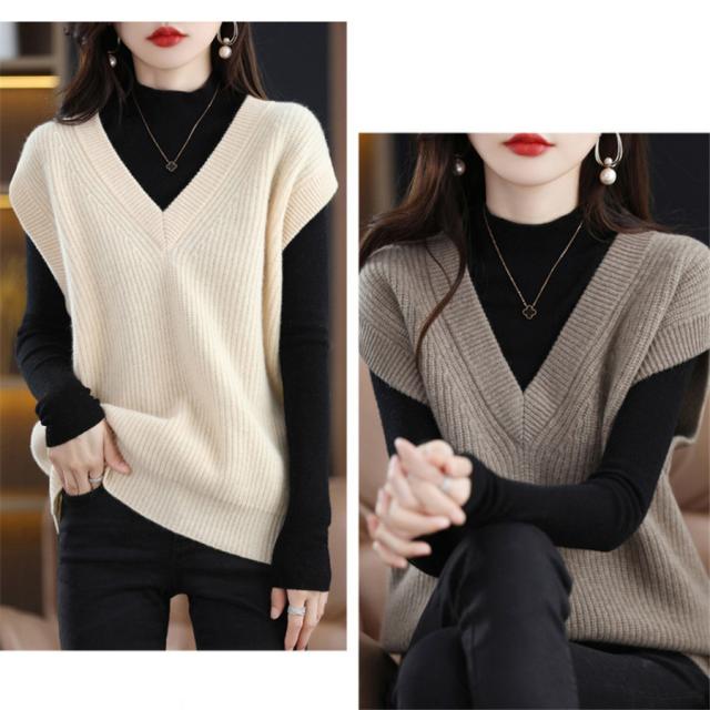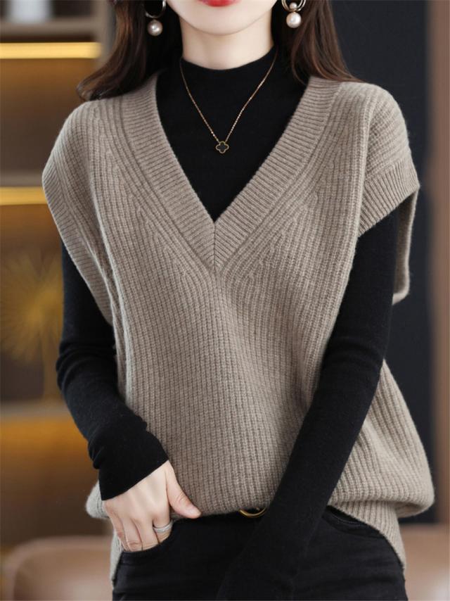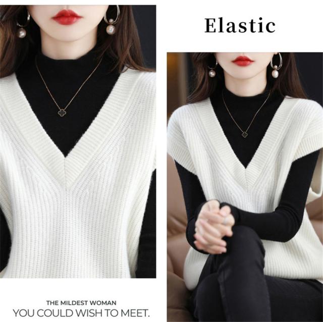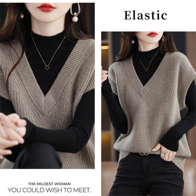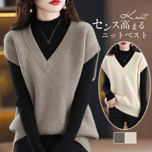 ベスト レディース ジレ ニット 秋 冬 春 セーター Vネック 暖かい 防寒対策 保温 プルオーバー ノースリープ レイヤード トップス 軽量