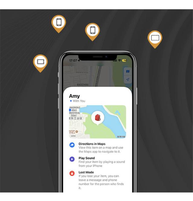 手持ちのIPhone の[探す]機能を開けて、荷物がどこにあるかを知ることができます。探すのはとても簡単です。