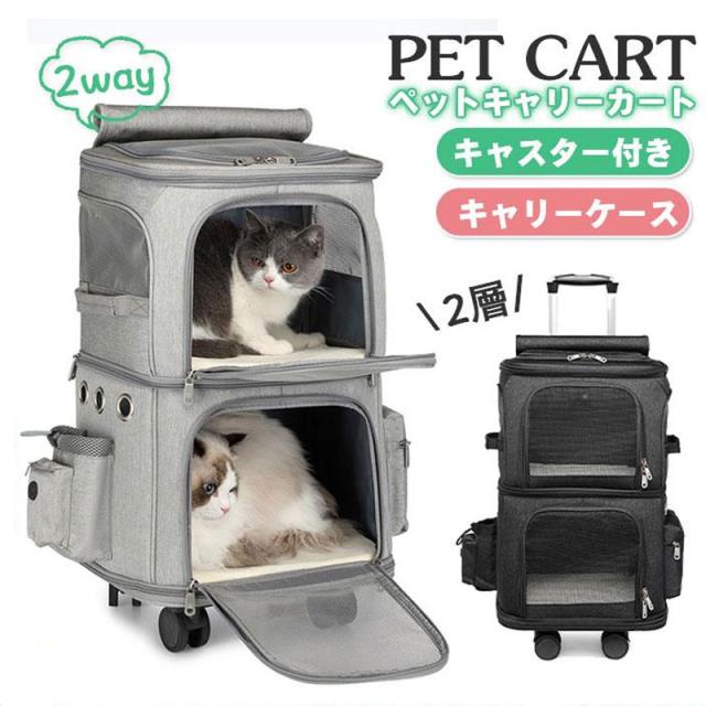 キャリーバッグ 犬 ペット 2層 2匹 メッシュ キャスター付き リュックキャリーバッグ キャリーケース 犬 猫 小型犬 中型犬 動物 旅行 遠出