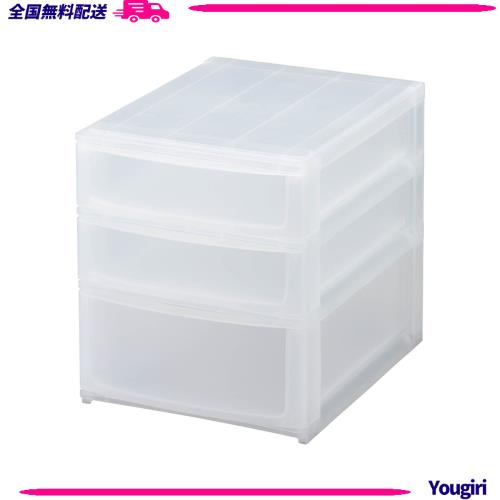 サンカ ポスデコ 引き出し収納ボックス A4 3段(浅2深1) クリア ずれを防ぐラバーストッパー 重ねて使える スタッキングチェスト ロック機