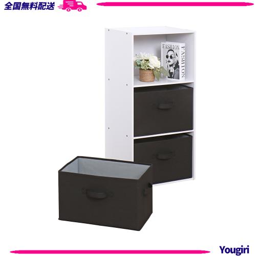 【特長】 ●カラーボックスに便利な3個セット。ぴったりフィットして見た目すっきり。 ●本体を広げて底板を入れるだけ。2ステップで完成。 ●使わない時は折りたたんでコンパクトに収納。 ●3か所の持ち手付きでどの面からも引き出しやすく、持ち運びやすい。 ●表地と中面の異なる色がアクセントになってそのまま置いても高見え。 ●カラーボックスやオープンラックへの収納のほかに、リビングでのちょい置きやおもちゃ収納、小物入れにも。