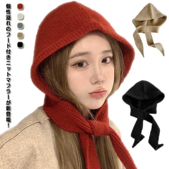 肩掛けニット レディース ニットマフラー ニット帽 フードマフラー フードマフラー ニットマフラー ニット ストール 肩掛け フードマフラー マフラー ショルダー トップス かわいい あったか 防寒 ロング丈 ファッション小物