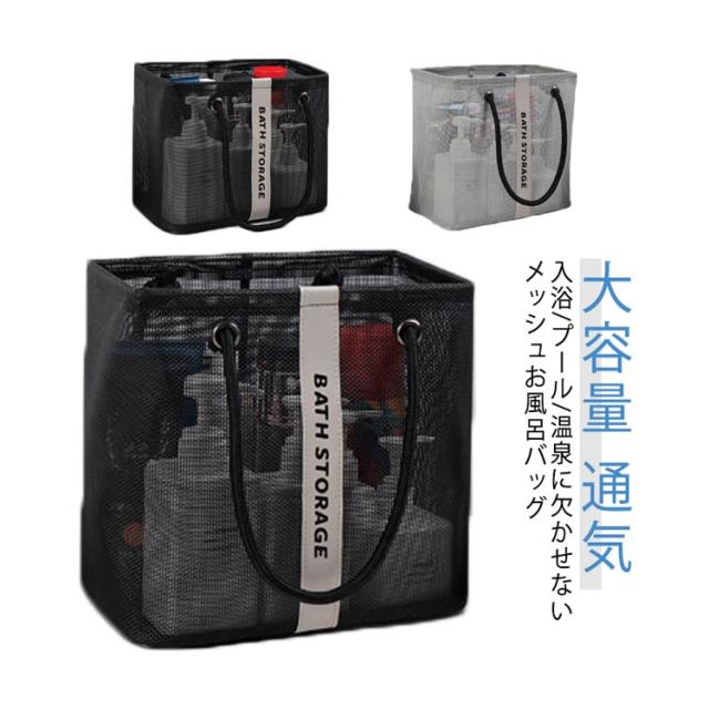 水切り お風呂バッグ スパバッグ 水切りバッグ 海 持ち手付き 通気 おしゃれ 大容量 カジュアル プールバッグ サウナバッグ ジムバッグ 温泉バッグ 小型 旅行 軽量 マチ幅広 男女兼用 メッシュ 便利グッズ 銭湯 コンパクト