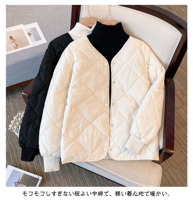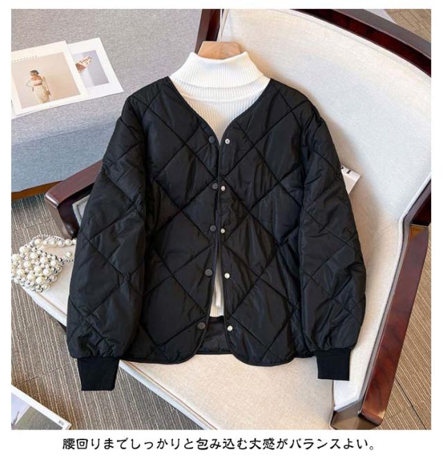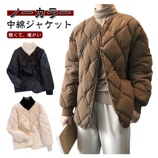 レディース ノーカラー カジュアル 格模様 軽量 中綿 コート キルティングジャケット キルティングコート キルティングジャケット あったか キルトジャケット 大きいサイズ ショート丈 軽い 暖かい 秋冬