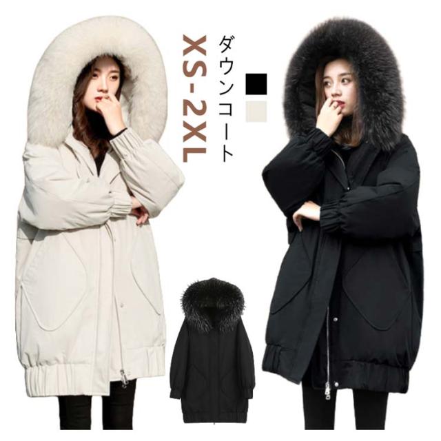 あったか 大きいサイズ XS ベンチコート ダウンコート 小さいサイズ 防寒性抜群 ダウンジャケット レディース ミドル丈ダウン フード付き60%ダウン 暖かい 厚手 防寒 ダウンコート 軽量 撥水 ファー付き 黒 ブラック 韓国 20代 30代 40代 50代