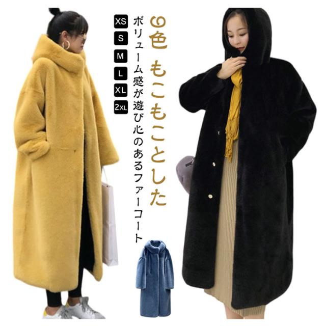 ロング丈 ボリュームファーコート フード付き ボリュームファーコート ファー アウター 秋冬 ボア コート フェイクファー モコモコ ロングコート ロング ムートンコート ボアコート マキシ丈 ふわふわ 防寒 ゆったり カジュアル 大人可愛い フード ポッケト 暖かい