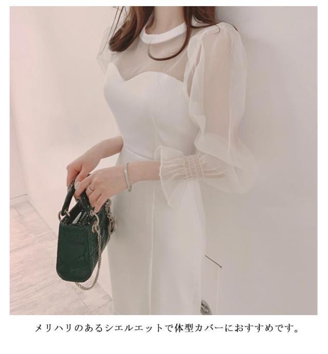 シアー袖 透け 結婚式 ドレス レディース タイトドレス マーメイドドレス 結婚式ドレス パーティードレス 韓国 同窓会 成人式 結婚式 きれいめ ワンピース お呼ばれ 袖あり 長袖 黒 白 オケージョン春 夏 秋 冬 可愛い 二次会