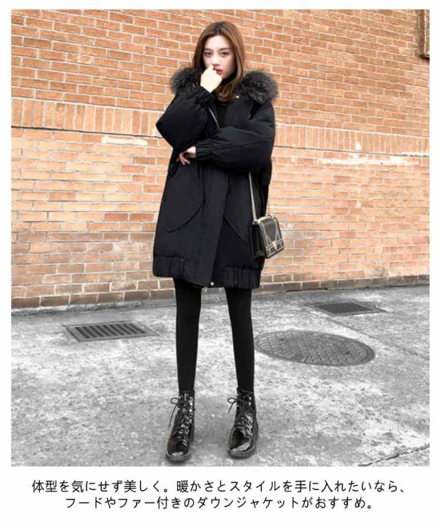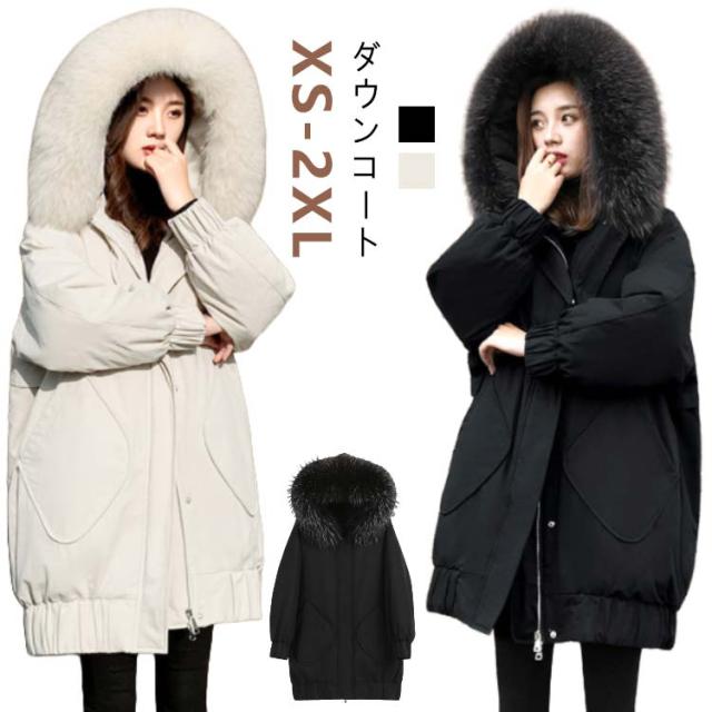 ダウンジャケット レディース アウター XS フード付き60%ダウン ダウンコート ミドル丈ダウン 小さいサイズ 防寒性抜群 ダウンコート ベンチコート ファー付き 厚手 防寒 撥水 暖かい あったか 軽量 黒 ブラック 韓国 20代 30代 40代 50代