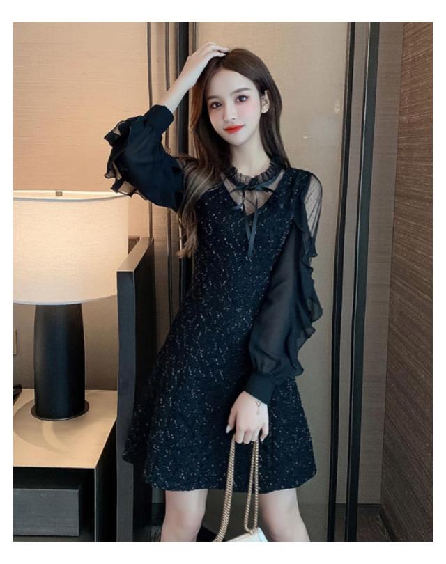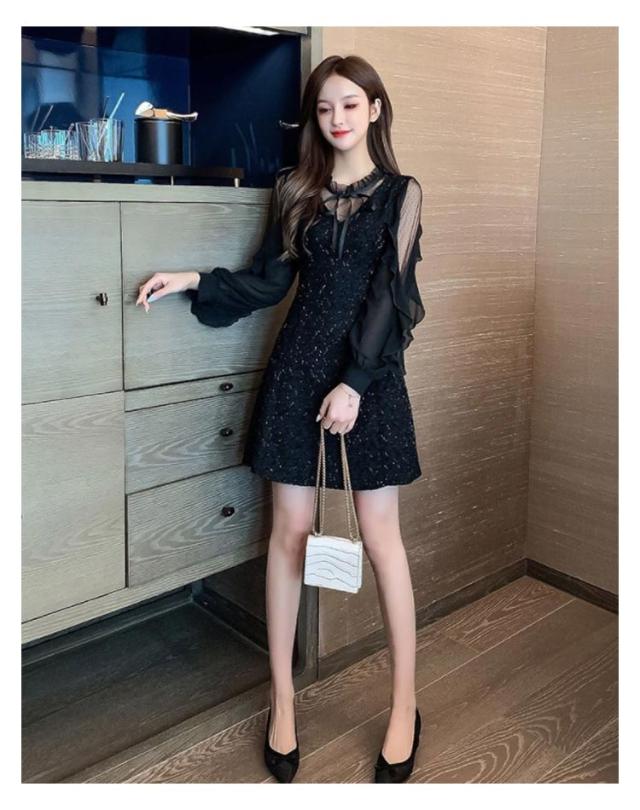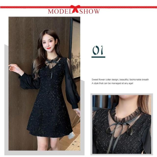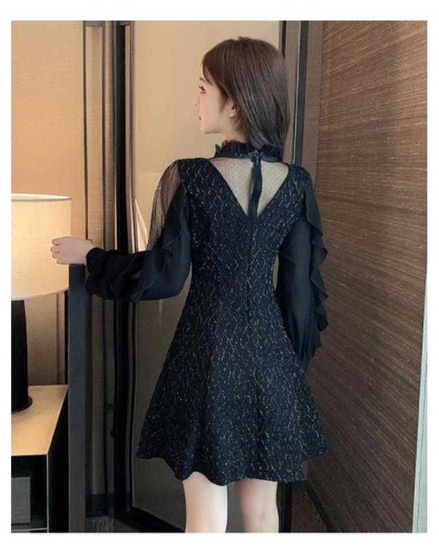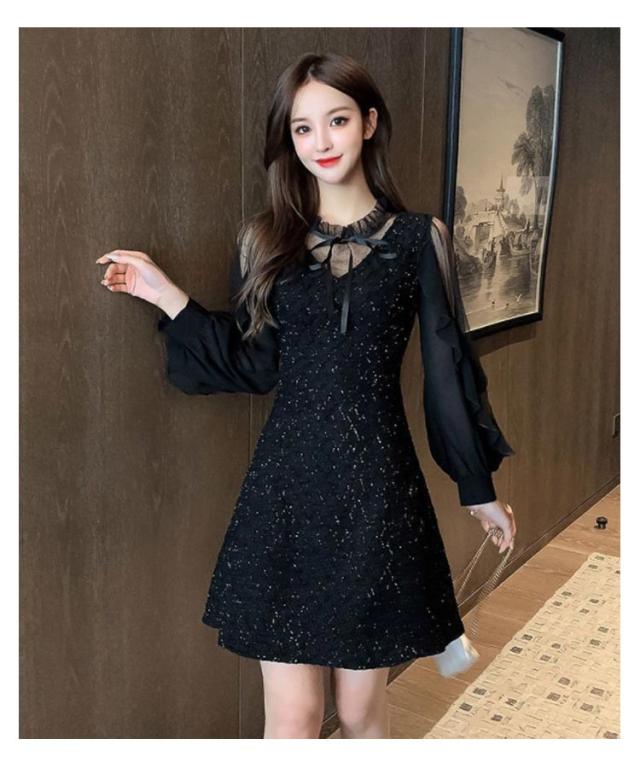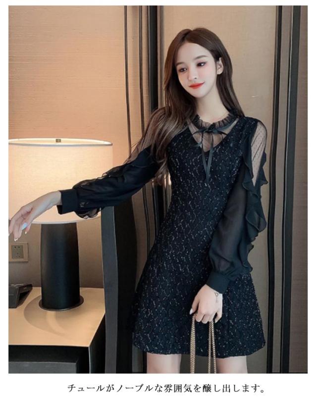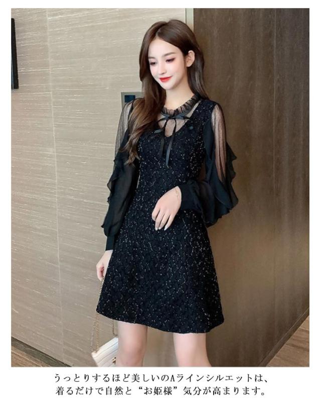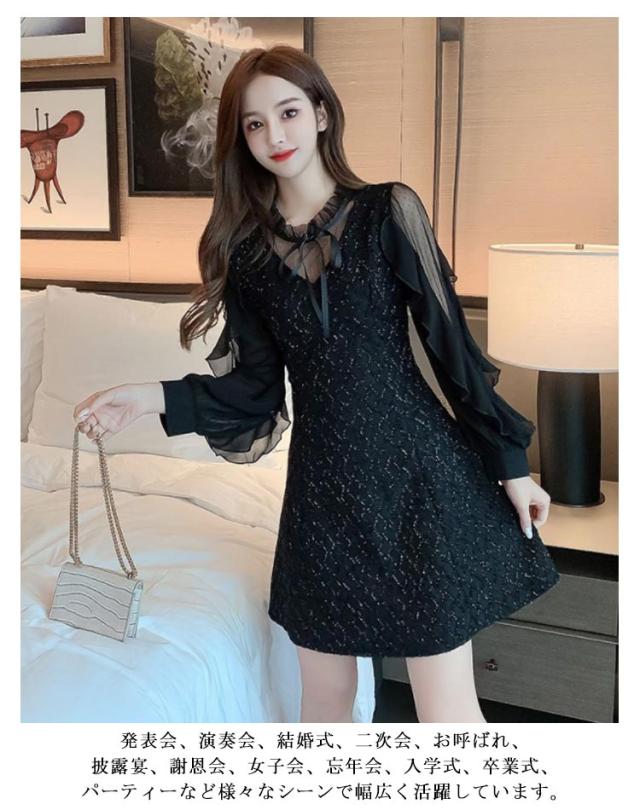 ラメ パーティードレス ショート丈 ドレス ワンピース 韓国 冬 キャバドレス キャバ嬢ドレス ミニドレス 同窓会 成人式 二次会 ブラック ベロアドレス ベルベット フレアワンピ ドレスワンピ ツイード 春 秋 長袖 ミニ丈 おしゃれ ブラック