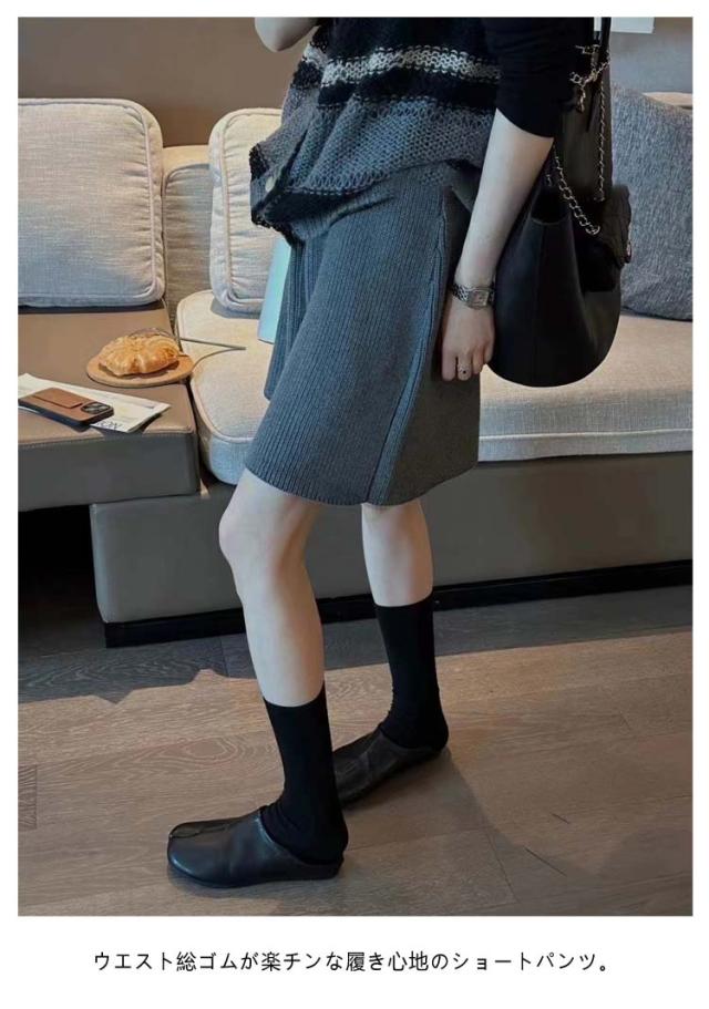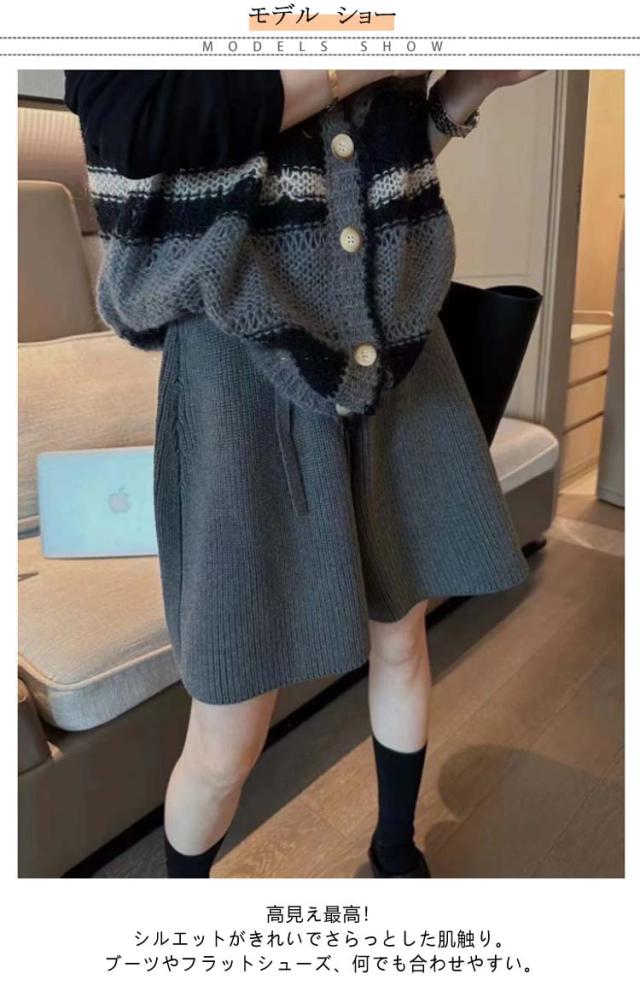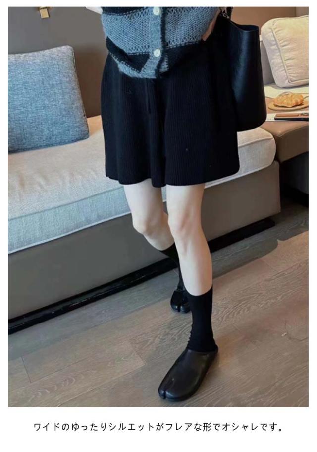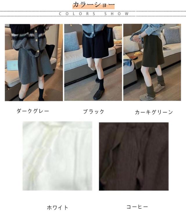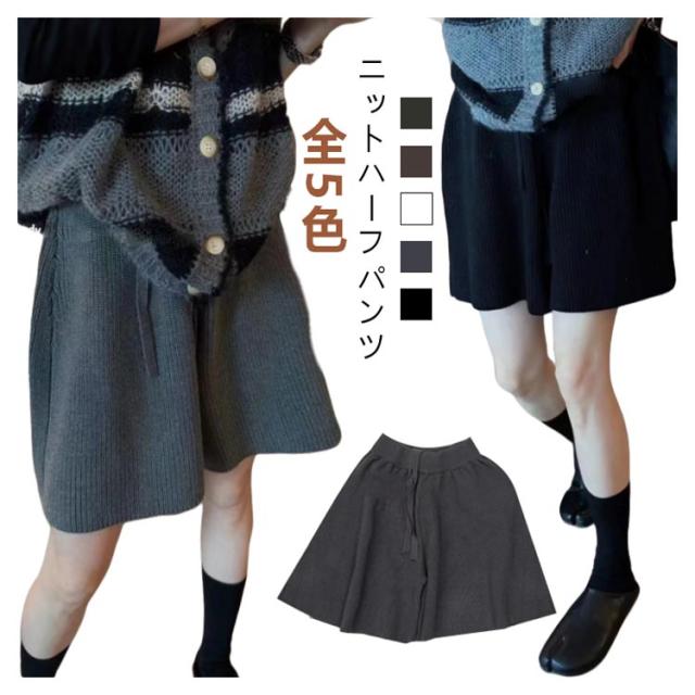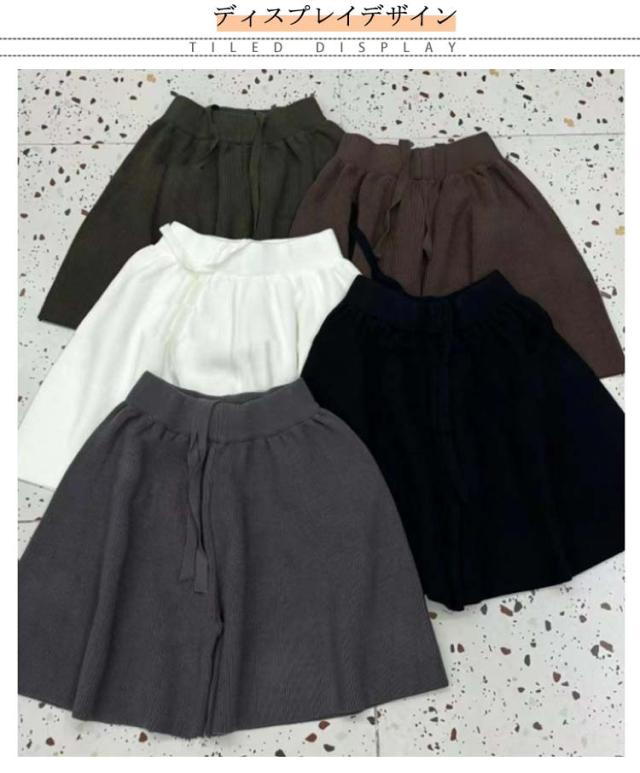 ショートパンツ ボトムス ハーフパンツ 冬 ワイド Aライン ショートパンツ レディース パンツ ワイドパンツ 秋 ショート丈 スカーチョ ウェストゴム グレー ショーパン ゆったり きれいめ おしゃれ 黒 ニット カーキ 白 キュロット レイヤード 重ね着 五分丈 5分丈