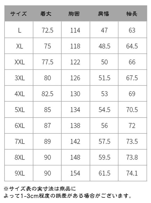 | サイズ | L XL 2XL 3XL 4XL 5XL 6XL 7XL 8XL 9XL |