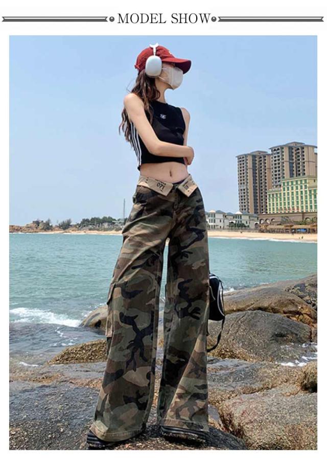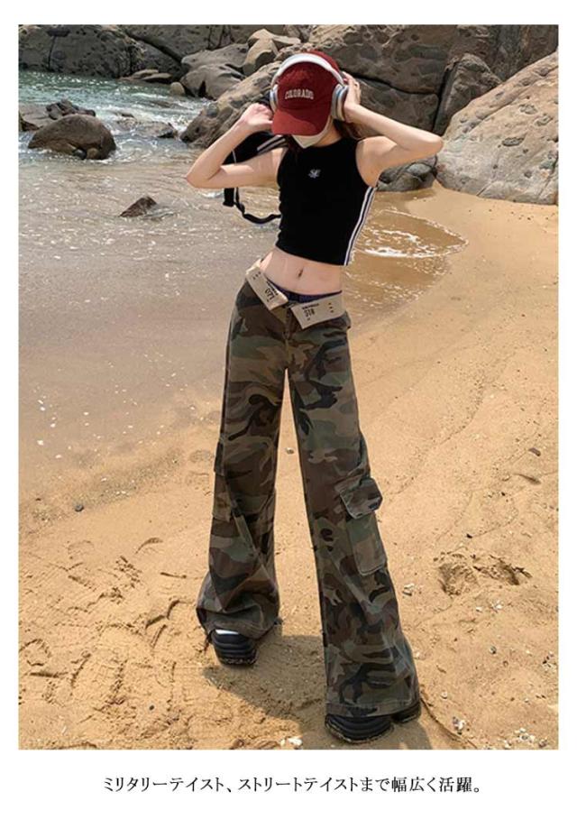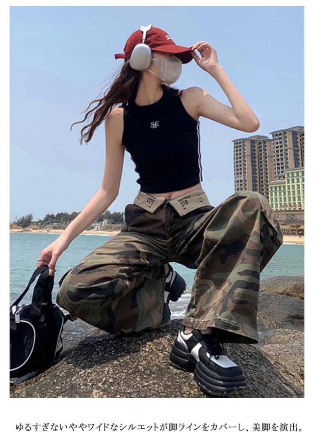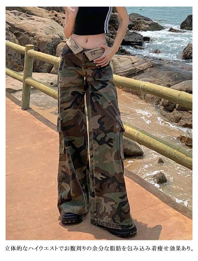 アメカジ カーゴパンツ ミリタリーパンツ ズボン ワイド ミリタリーパンツ レディース 韓国ファッション ミリタリー 大きいサイズ アウトドア カジュアル 迷彩 ワイドシルエット ストリート ずぼん カモフラ 美脚 脚長効果 着?せ ダンス衣装 大人 女性