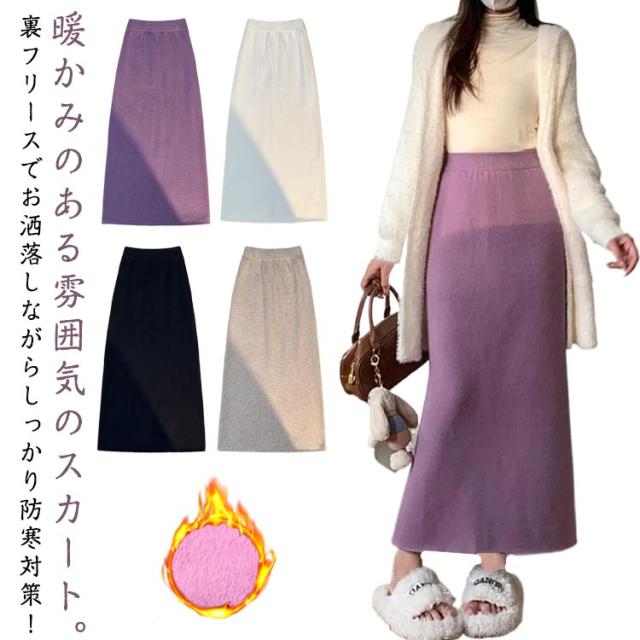 体型カバー 秋冬 通勤 レディース 暖かい カジュアル 防寒 秋冬 ロングスカート オフィス ウエストゴム 裏起毛 おしゃれ マキシスカート 裏起毛スカート タイトスカート 裏起毛 きれいめ 履きやすい 動きやすい 大人 送料無料 S M L XL
