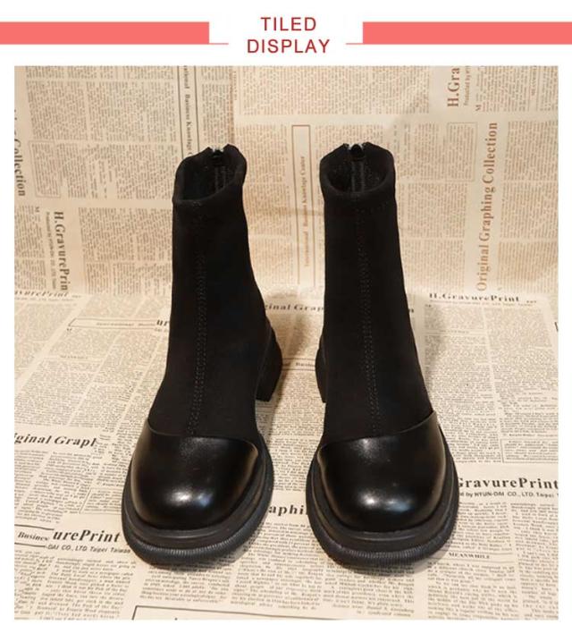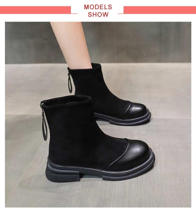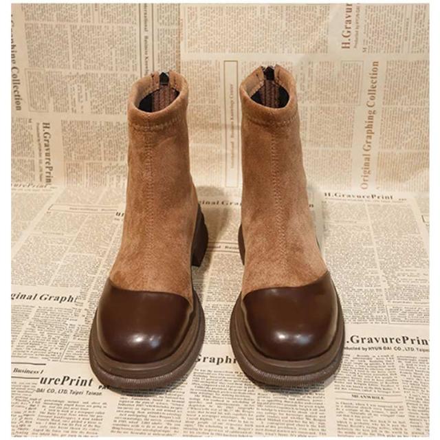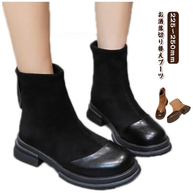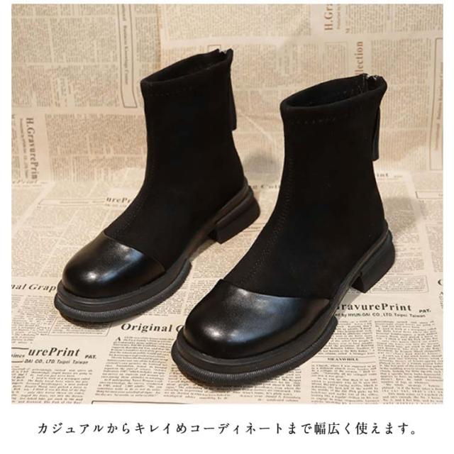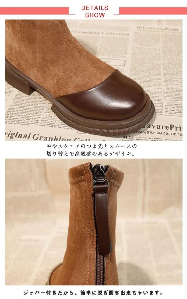 | お洒落切り替えブーツ カジュアルからキレイめコーディネートまで幅広く使えます。 ジッパー付きだから、簡単に脱ぎ履き出来ちゃいます。 ちょうどいいヒール高と丈感でどんなコーデにもマッチします。 安定感のある太ヒールで、長時間歩いても疲れにくい! ややスクエアのつま先とスムースの切り替えで高級感のあるデザイン。 | |