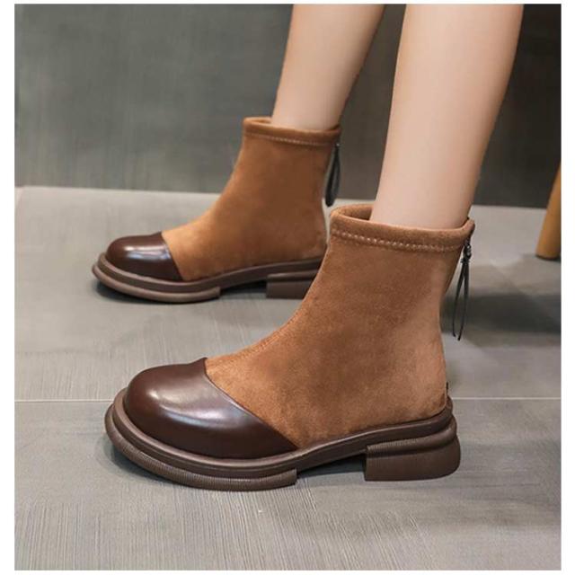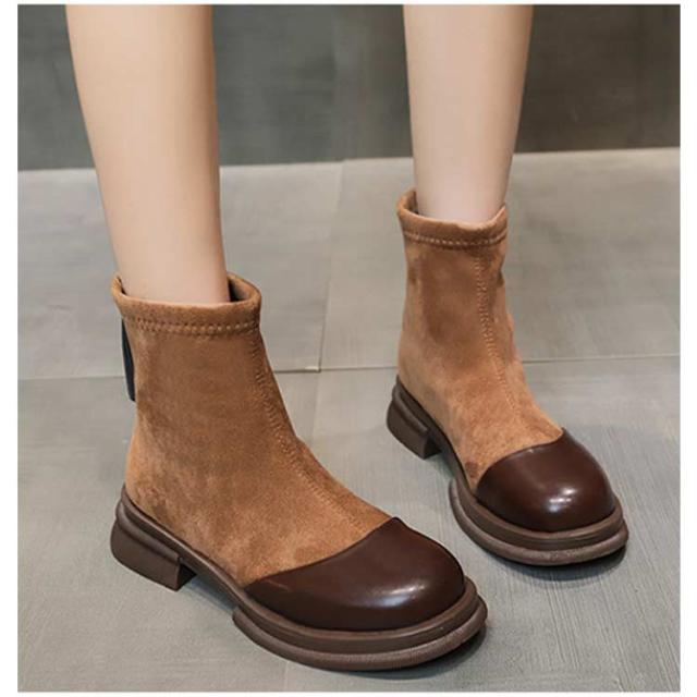 ショートブーツ スエード レディース ブーティ 粗いかかと 切り替え ハーフブーツ 歩きやすい 滑り止め おしゃれ カジュアル 大人 女性 エレガント 柔らかい 安定感 美脚 コンフォート 婦人靴 秋冬 通勤 履きやすい シンプル ギフト プレゼント 送料無料