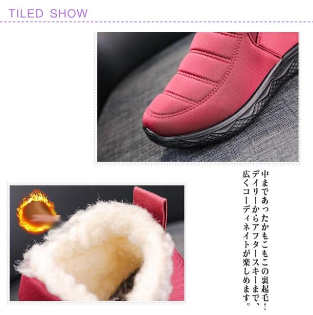 | 防滑、防寒機能を備えたスノーブーツは、この秋と冬に最適です。長い時間歩いても、疲れを知らずの1本に仕上げました。 寒い季節の防寒対策としても効果的。 ソール部分に溝があり滑りにくく、安心して履いていただけます足首のボアてブーツ内に冷気が入るのを防ぎます。 中まであったかもこもこの裏起毛!デイリーからアフタースキーまで、広くコーディネイトが楽しめます。 なカラーでどんなコーディネートにも合わせやすいこの冬のマストITEMです。 冬場の足元は[防寒もお洒落も]コレで決まり! 【場合】防寒対策にピッタリで冬の通勤・通学・お出かけに暖かさを提供します。雪遊び、散歩、登山、スキー、普段使い、雪国への旅行、アウトドアなど。 | |