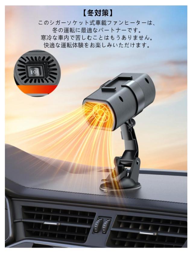 ガラス凍結防止 ミニ 自動車用粘着式ベース付き ヒーター 車載ヒーター 暖房 シガーソケット 車載 ポータブル 除霜 車載用ポータブルファンヒーター 急速加熱 360度回転 除霧 車内ヒーター 車載ヒーター 2段階調節 角度調節可能 曇り防止 融雪