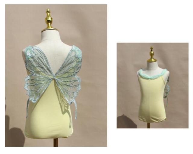 ジュニア 演出 キッズ レオタード 新体操 スカート付き バレエ ノースリーブ ピンク 女の子 子供用 バレエレオタード ダンス 妖精 可愛い チョウ おしゃれ グリーン イエロー スカートセット 体操 バレエ 練習服 レッスン着 発表会 バレリーナ