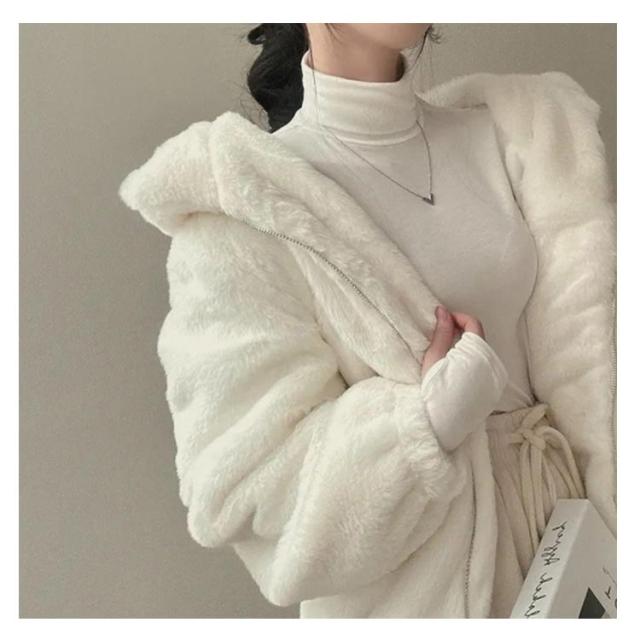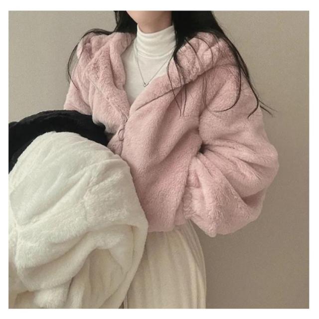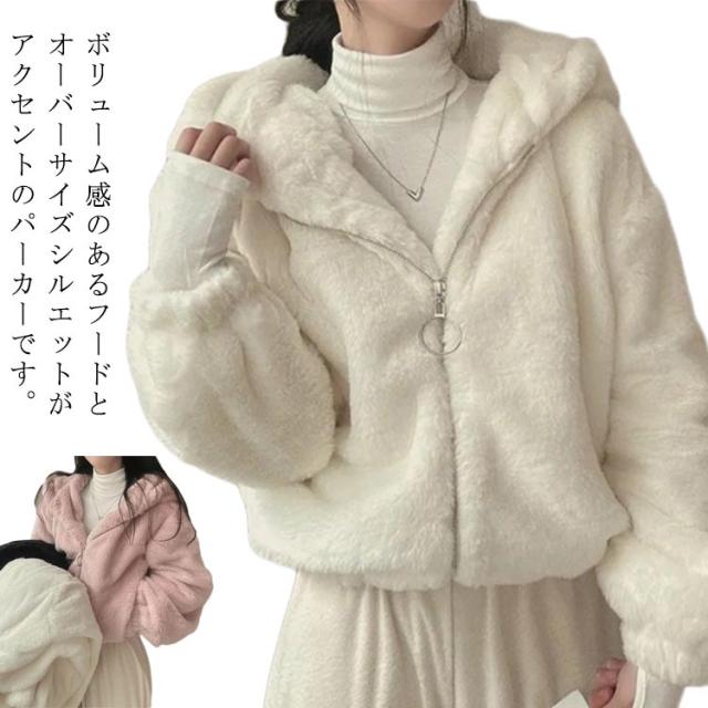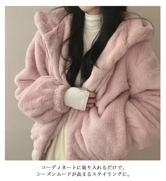 ふわふわ アウター ショート丈 ファーブルゾンファーコート ふわふわ レディース フェイクファー ジャケット ジャケット エコファー アウター エコファー もこもこ エコファー ブルゾン 防寒 暖かい 韓国風 ブラック ピンク
